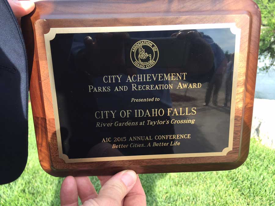 IDAHO FALLS – The city of Idaho Falls Parks & Recreation Department received the 2015 City Achievement award in recognition of the revitalization work done at the River Gardens at Taylor Crossing.