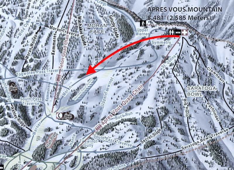 According to a news release, ski patrol received a call around 3:30 p.m. reporting an accident on Moran Run. The snowboarder was found on Moran, about one hundred yards below Togwotee Pass traverse on the north side of the trail in a treed area.