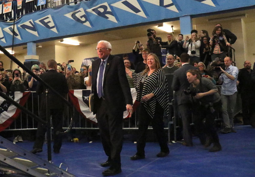 Vermont Sen. Bernie Sanders arrived at the Skyline High School gym nearly six hours later and was greeted by thousands of enthusiastic supporters.