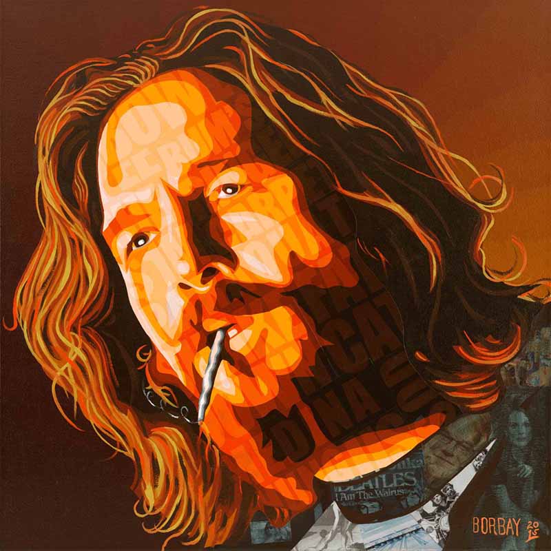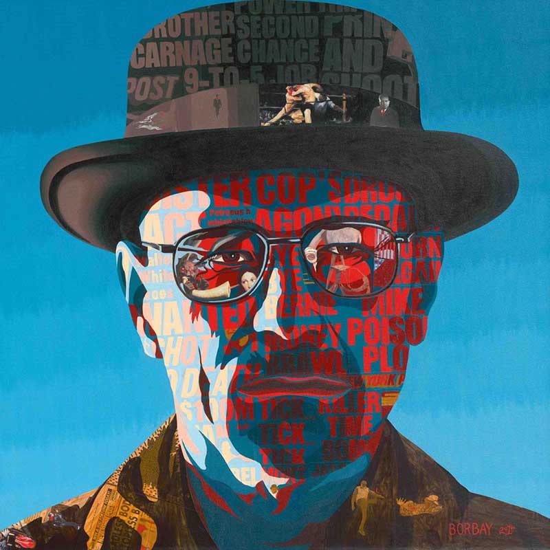 It was around that time that he honed in on his style of cutting headlines from the New York Post and working them into his paintings. His work has now been auctioned to benefit the Serena Williams Foundation, used on a hip-hop album cover and as the cover of the new book “Michael Jackson, Inc.”