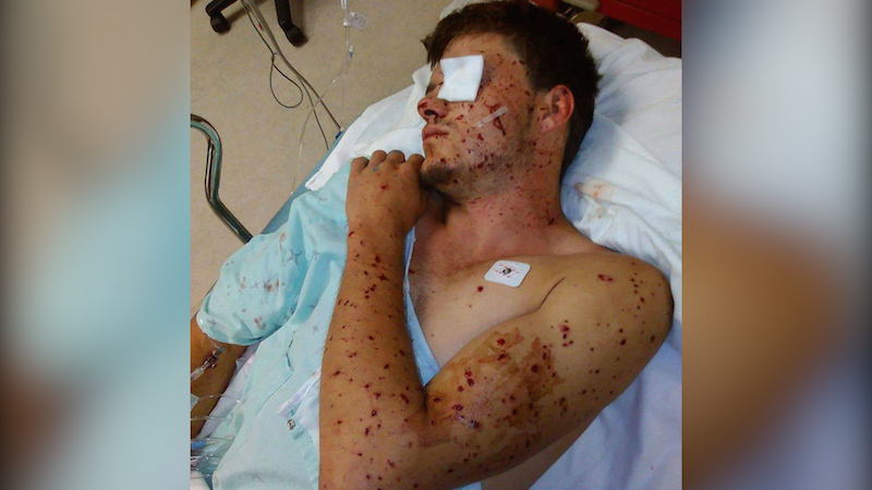 Johnson was rushed to Eastern Idaho Regional Medical Center with shrapnel injuries to his arms, face, ears and eyes.