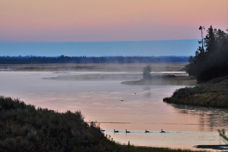 Before the coyotes ended their version of the song, a flock of sandhill cranes picked up; as well as a flock of Canada geese on the Henrys Fork. The music was more beautiful than the dawning of the smoke-filled sky from the area wild fires.