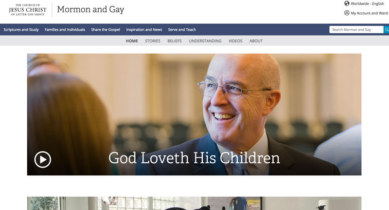 While the previous site prominently displayed the church’s doctrinal stance against homosexual activity on its homepage, the new materials feature the stories of gay members. “Church Teachings” is located on a separate page; roughly 1,700 words and five videos on “loving one another” precede the first direct statement that “homosexual activity is a sin.”