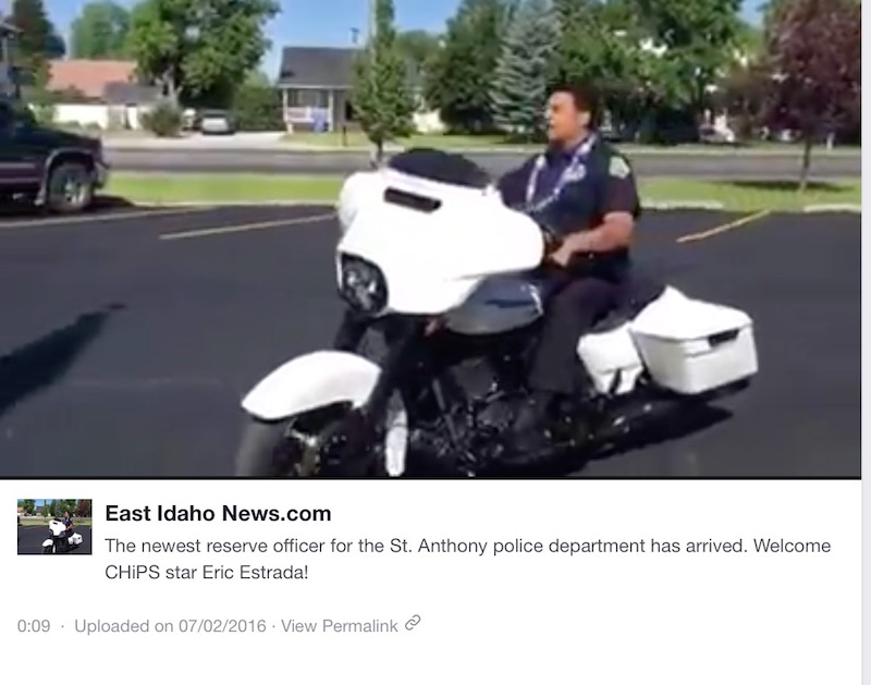 The video may only be eight seconds but it’s been viewed nearly 550,000 times since it was posted on July 2. Hollywood star Erik Estrada was sworn is as a reserve police officer in St. Anthony and took a spin on his police motorcycle.