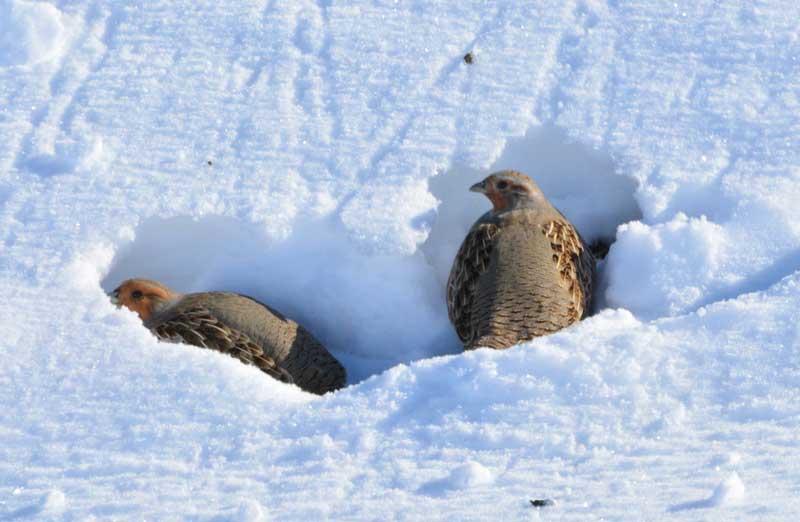 I am always excited when I see covey of huns – only give me a little notice. Busting out of new-fallen snow with no tracks or warning could cause heart failure and I am not ready for that trip. But I will be more observant for little mounds in the snow near my bird feeders in the future.