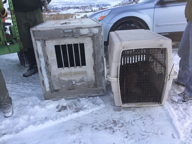 On Thursday, Jan. 19, Fish and Game staff, with the help of an experienced hound hunter, was able to track and tree the three kittens (ranging in size from 35-50 pounds). Catch poles were used to extricate the cats from the trees and load them in large animal crates. The kittens were transported to the Fish and Game office for an overnight stay. Getting mom proved a little trickier. She escaped capture efforts until the next day.