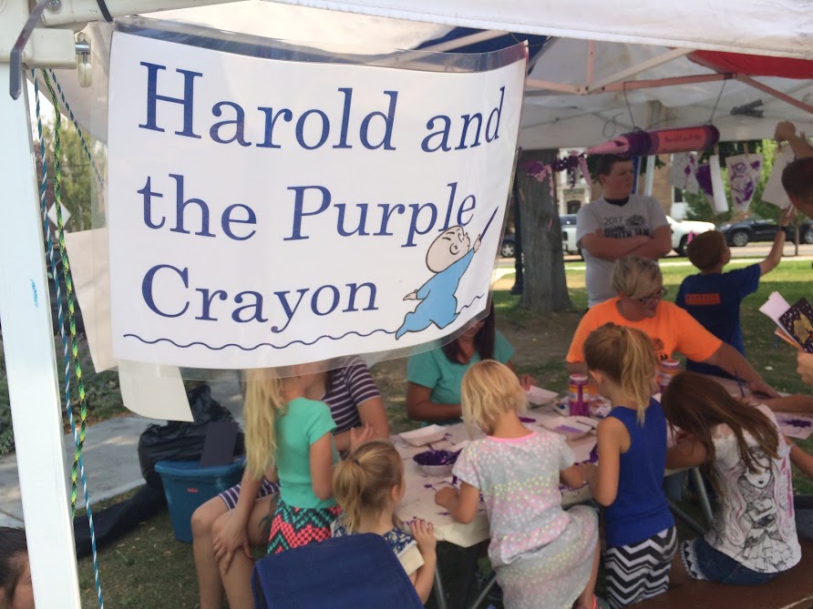 Craft tents centered around children’s books Where the Wild Things Are, Harry Potter, Where the Sidewalk Ends, Harold and the Purple Crayon and more.