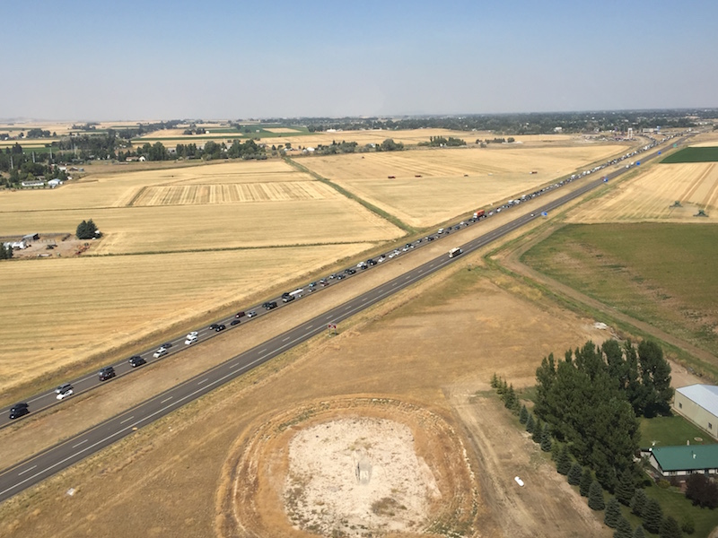 Some anecdotal evidence: There was a traffic jam on parts of I-15 for almost 24 hours in southern Idaho and northern Utah all day Monday and into Tuesday. Similar long-term jams were reported on I-15 northbound into Montana and into Wyoming. And traffic was heavier in east Idaho than elsewhere in the state. Based on that, the city’s estimate seems more plausible.
