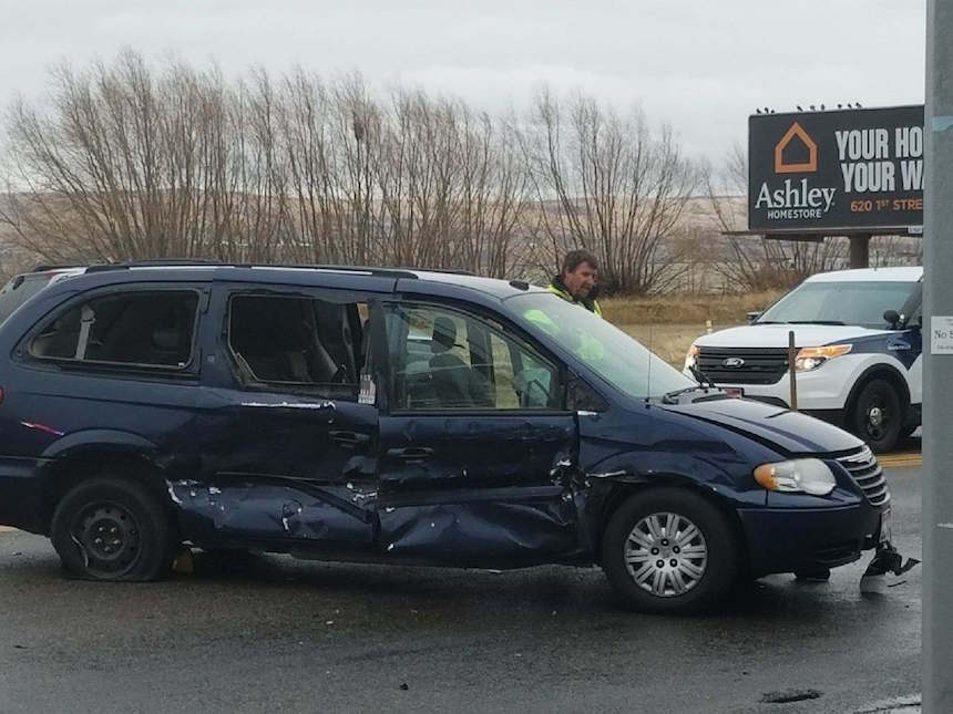 A Ford F250, a blue minivan, a Nissan Murano and one other vehicle were all damaged, according to Idaho Falls city spokeswoman Kerry Hammon. A school bus also received minor damage. It’s unknown if drivers or passengers in the other vehicles were hurt.