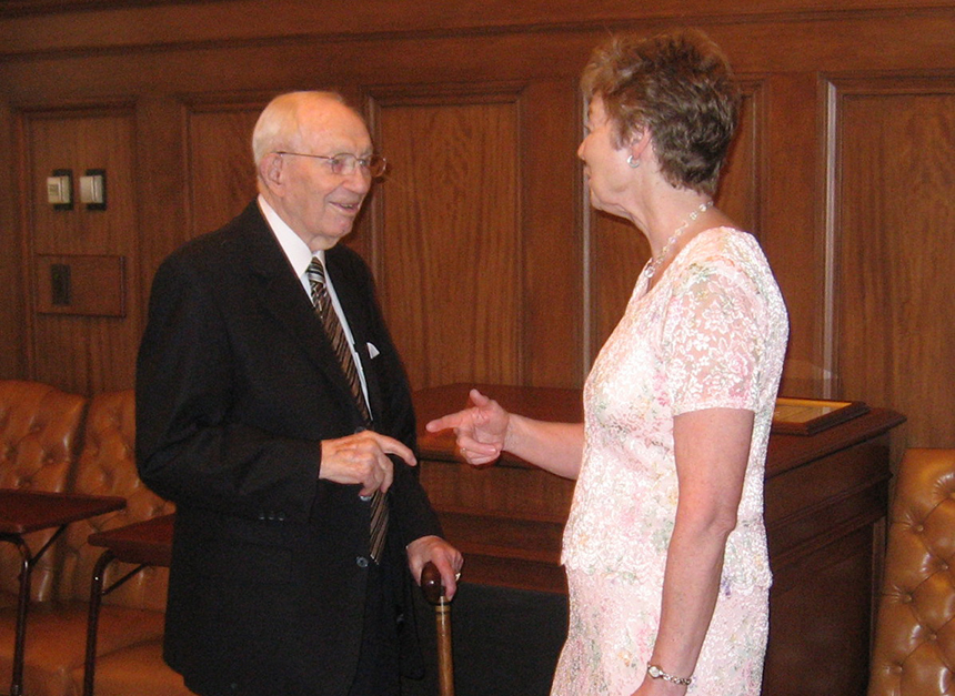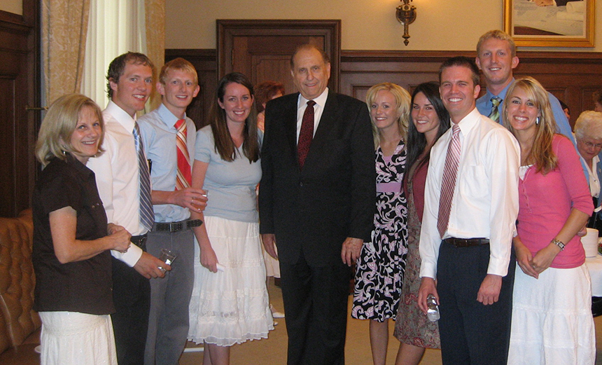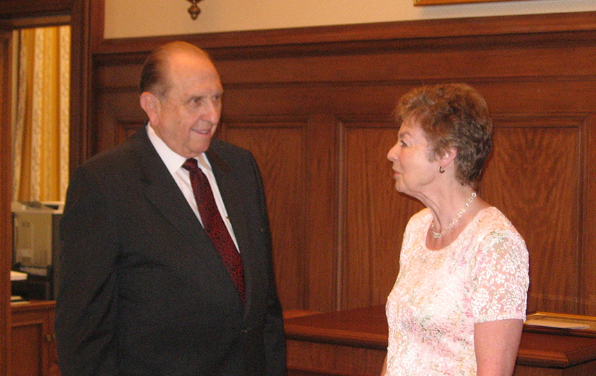 I entered a large conference room where the reception was being held and was stunned to see several members of the Quorum of the Twelve Apostles mingling and shaking hands. Margaret was at the front of the room. Suddenly a hush fell over the crowd as then-church President Gordon B. Hinckley entered the room.