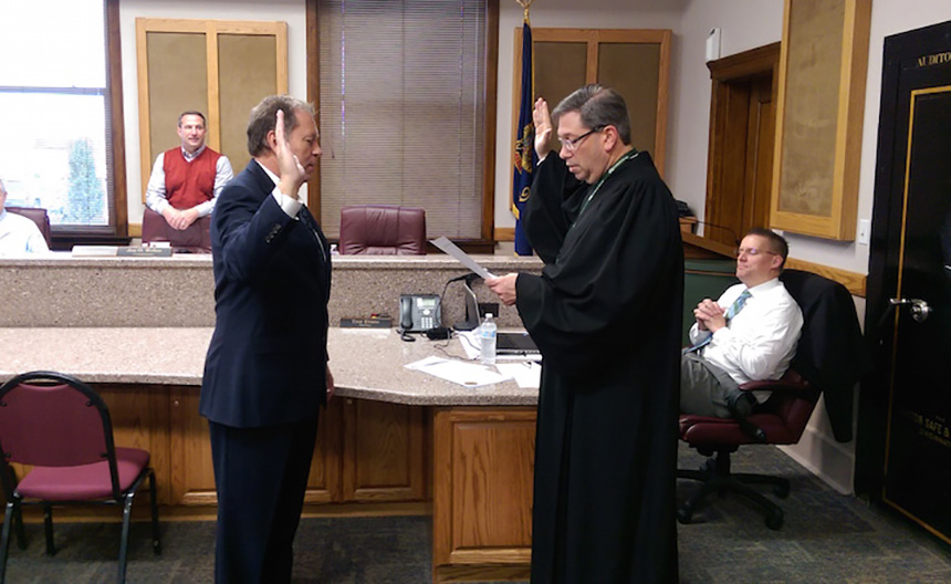 REXBURG — Brent Mendenhall was sworn in Tuesday morning by District Judge Gregory Moeller to fill the Madison County Commission vacancy left by the recent resignation of Commissioner Kimber Ricks.