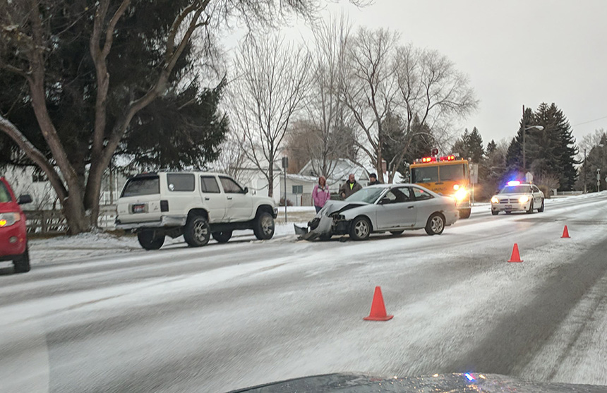 In addition to the slide-off on US 20, Idaho Falls Police are on the scene of a crash on 1st Street. Several others have been reported.