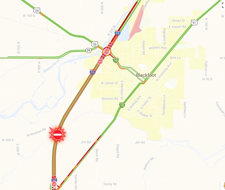 The Bingham County Sheriff’s Department, Fort Hall Police, Blackfoot Police, Idaho State Police, and the Idaho Transportation Department are diverting northbound traffic at exit 89. Southbound traffic is being diverted at exit 93, Bergner Blvd. and the junction of US26.