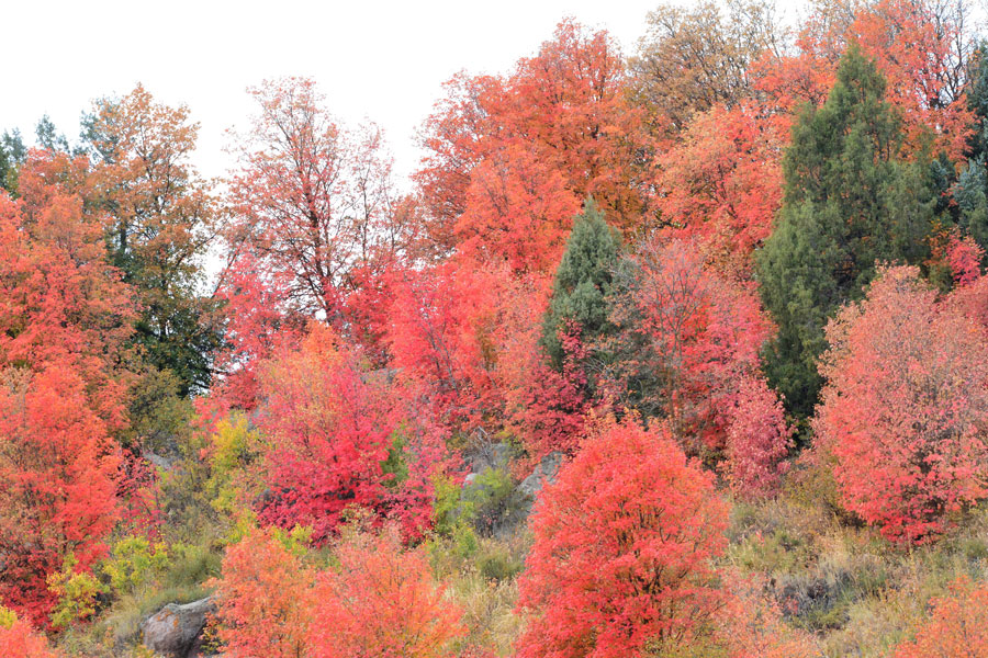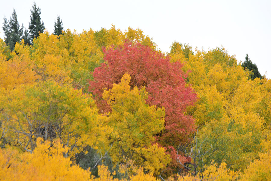 Red, purple, yellow, orange abound in eastern Idaho during the fall. My favorite are aspens that turn a yellowish orange usually found on edges of large groves of yellow-colored trees. Then comes my second favorite color — the red maple bushes on Ashton Hill or in the mouth of Palisades Canyon in Swan Valley. I also love the contrasts of the dark green evergreens with the Christmas “lights” of the broadleaf colors scattered throughout the forest.