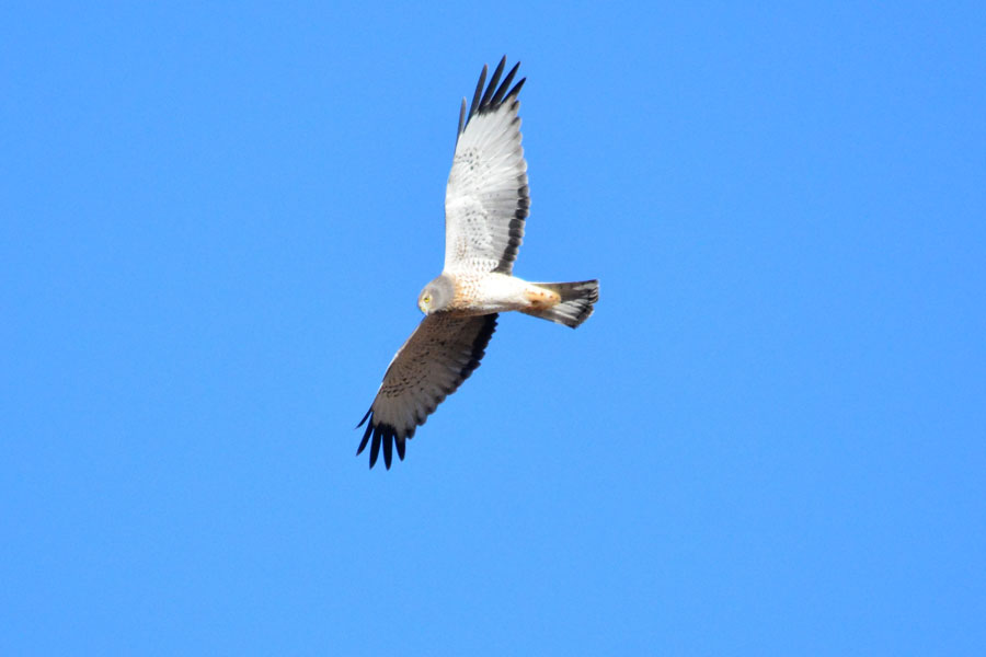 Two Northern Harriers were hunting the edge of the woods while some Black-billed Magpies were harassing something in a large Russian olive tree.