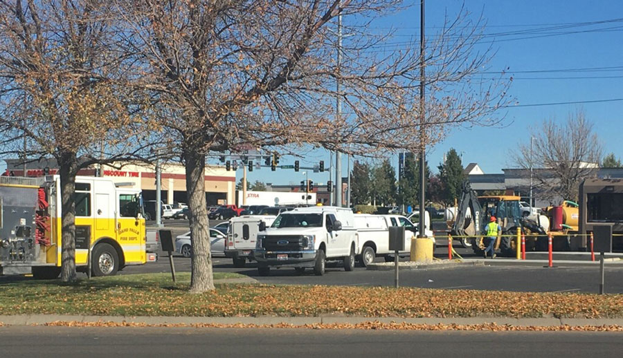 IDAHO FALLS – Construction crews are working to repair a gas leak at Wells Fargo near the Grand Teton Mall in Idaho Falls.
