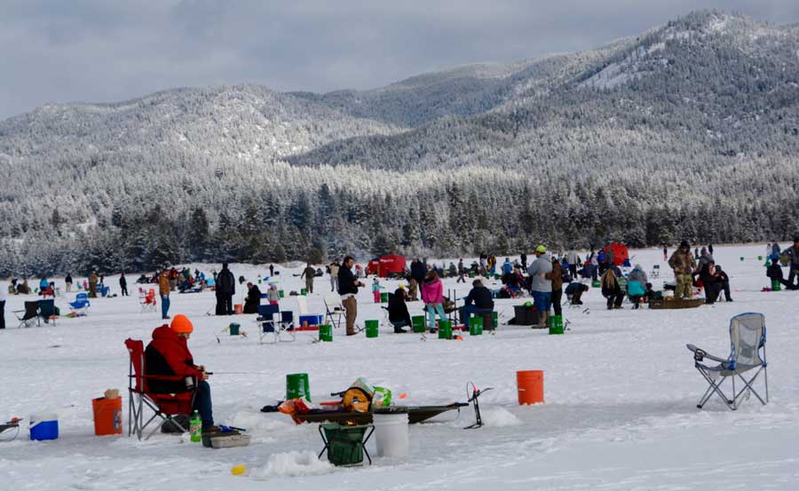 This world famous lake produces some of the largest trout in Idaho. Hybrid trout called cut-bows can reach up to 10 pounds or more. Ice fishing here usually begins around Thanksgiving week when the ice becomes strong enough to stand on, and this lake has an abbreviated season for ice anglers because all fishing closes on on the lake on Jan. 2, 2019. Early season is usually considered to be the best. As the season progresses oxygen levels in the lake tend to drop making fish less active. Seasoned anglers willing spend the time figuring out where fish are and what they are biting on usually get rewarded for their efforts. Several access points are available around the lake with the most popular being the Fish and Game Hatchery and County Park which are both plowed with restrooms available. Henrys Lake State Park is only accessible in a four-wheel drive vehicle. Check out Fish and Game’s Fish Planner for a map, fishing rules and more information about Henrys Lake.
