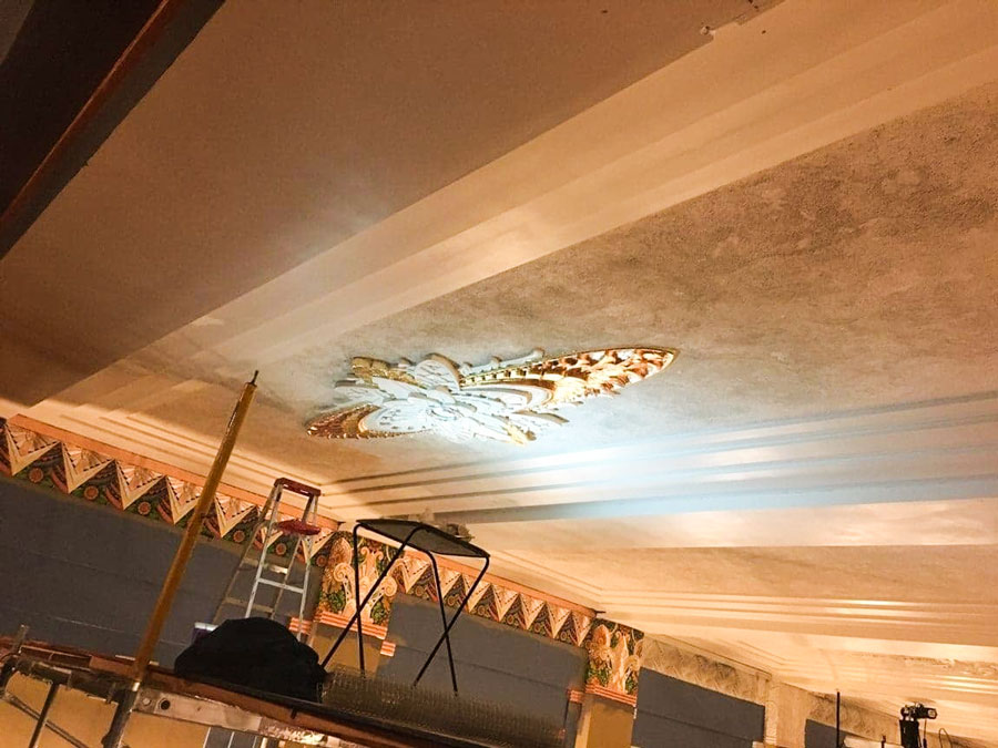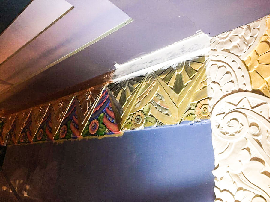 Hall began organizing a color scheme that matched the theater’s original paint. He was passionate about keeping the vintage look and even used casein paint, a water-based paint on the theater’s original walls.