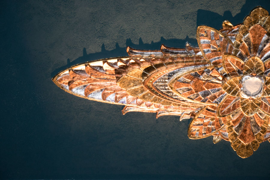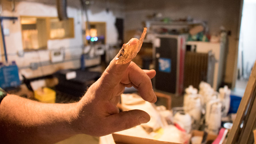 “Thousands of sheets of gold, copper and silver leaf in here,” Hall says.