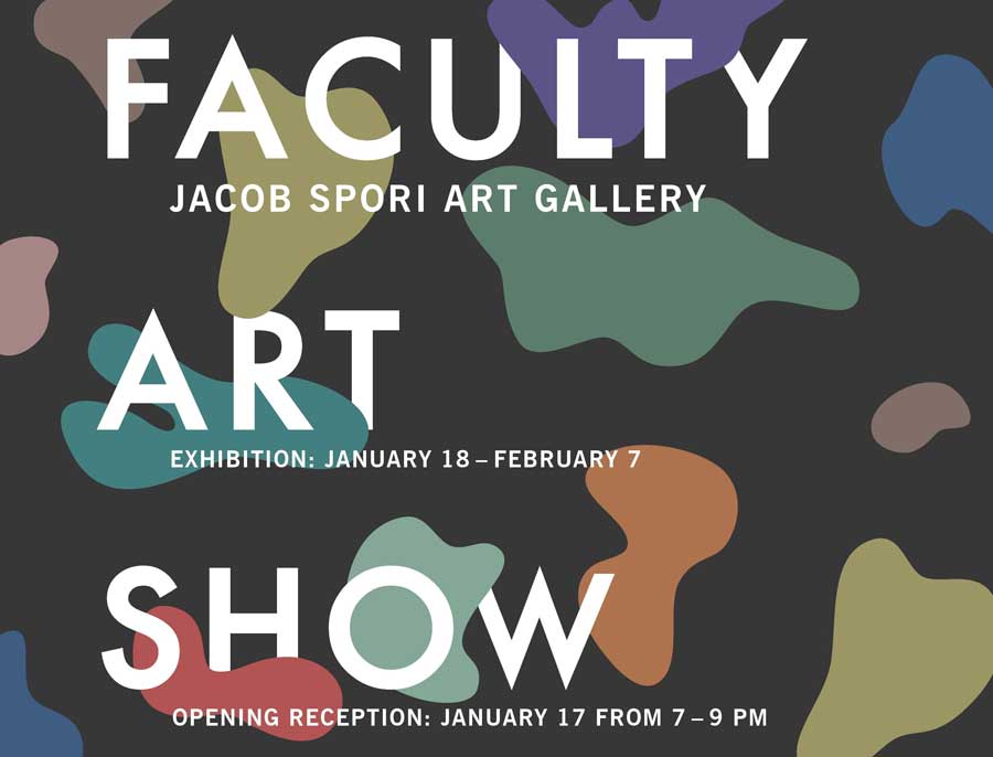 This coming Jan. 18, to Feb. 7, the Jacob Spori Art Gallery will exhibit artwork created by art faculty. The gallery is open from 9 a.m. to 8 p.m. during the week and 10 a.m. to 8 p.m. on Saturdays.