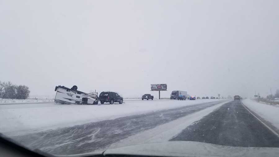 No details have been released about incidents, but one of the wrecks involved a camper that was turned on its top. Traffic is moving slowly as a result.