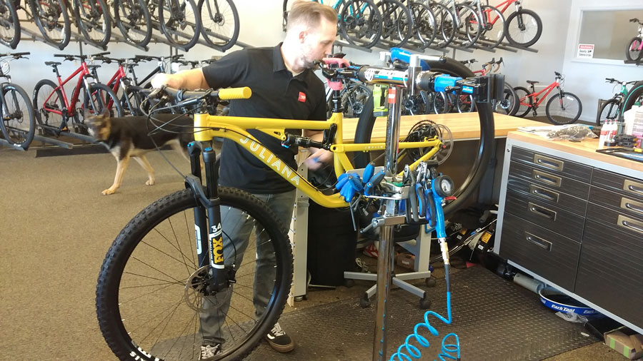 “We’re constantly going to the trails after we close up. It’s good to buy bikes from people who ride bikes,” Page says. “I want to bring back the fun that a bike shop offers. I don’t want our shop to be stressful to come in and I don’t want people to feel uncomfortable. Buying a bike should be fun.”