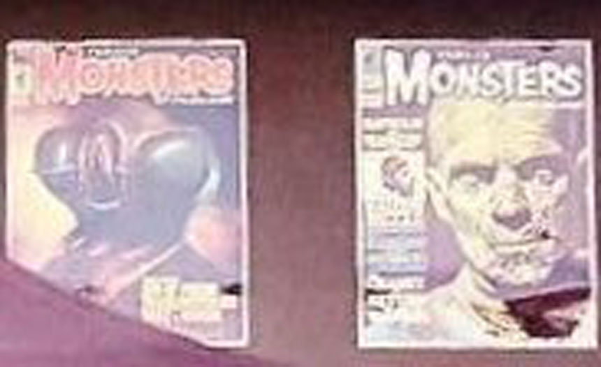 The posters resemble horror film movie posters from the 1950s and 60s.
