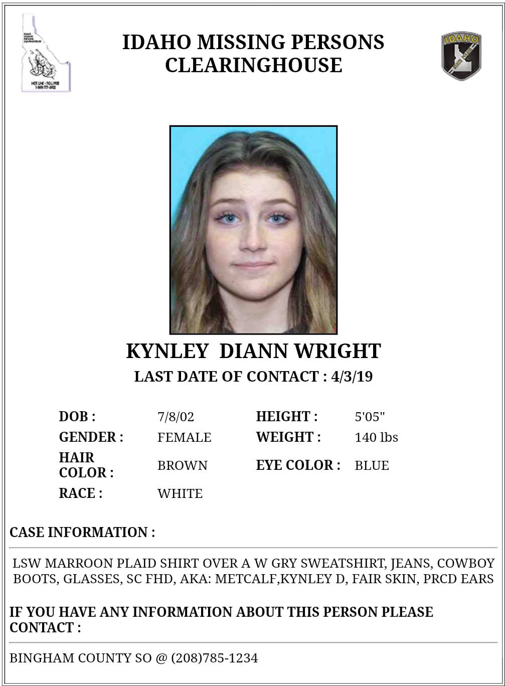 Kynley Wright is 16-years-old, weighs around 140 pounds, is 5’5″, has brown hair and blue eyes. She was last seen wearing a plaid shirt over a grey sweatshirt, jeans, cowboy boots and glasses.