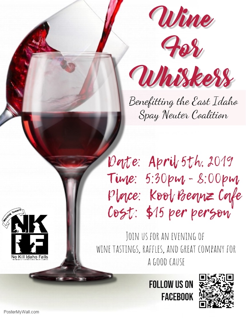 IDAHO FALLS — The East Idaho Spay Neuter Coalition is hosting Wine for Whiskers on Friday evening. The fundraiser at Kool Beanz Café will include wine tastings, raffles and great company for a good cause, according to a news release. The cost is $15 per person.