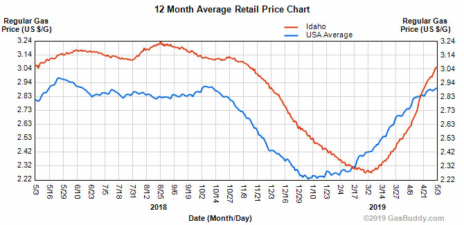 Idaho’s gas prices fluctuate significantly between winter and summer months. Dropping during the winter and coming back up during the summer.