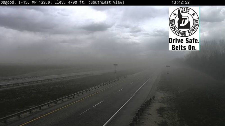 Gusty winds have caused some areas of blowing dust, as shown on this #ITD camera at Osgood, located on I-15 just N of Idaho Falls. Visibility hasn't been as low as last week's windy days, but do know that there will be reductions in visibility at times through Sunset. #idwx pic.twitter.com/DrZdm5uBM8