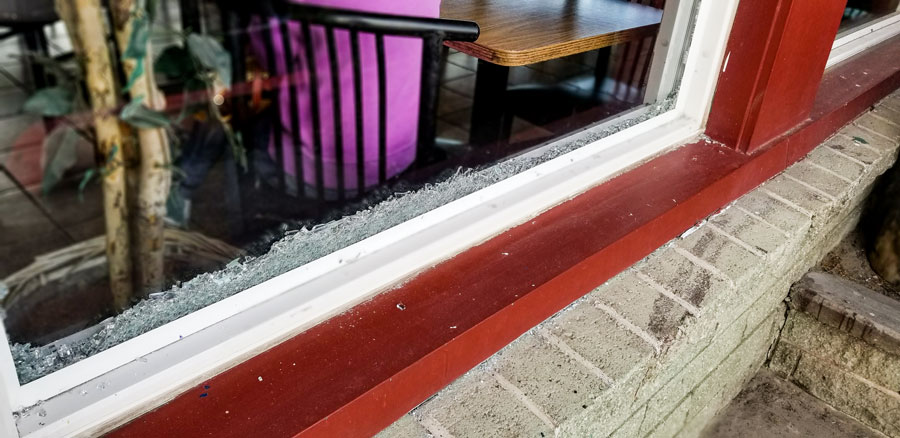 The restaurant has double sided windows, so at first glance, it’s hard to see that one window is missing. The outside glass was shattered, but the inside glass remained intact. Owners say repairs will cost at least $1,000.