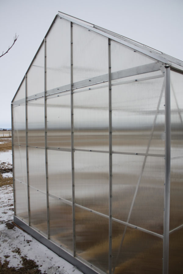 • Snow load on greenhouses can be very destructive if they are not properly built to withstand the weight. Most of the less expensive greenhouses are designed to be taken down during the heavy snows of winter, and then reassembled in early spring to get plants started. Additionally, you will want to have a greenhouse with enough slant to the roof that it will naturally shed the snow off the top. The greenhouse plastic wrap covering that you buy at a local hardware store works well for these temporary greenhouses, but will deteriorate after 1 to 2 years of use. Wind will also shorten the life of your plastic, and if your greenhouse is not properly anchored down, the wind can make your greenhouse an airborne structure.