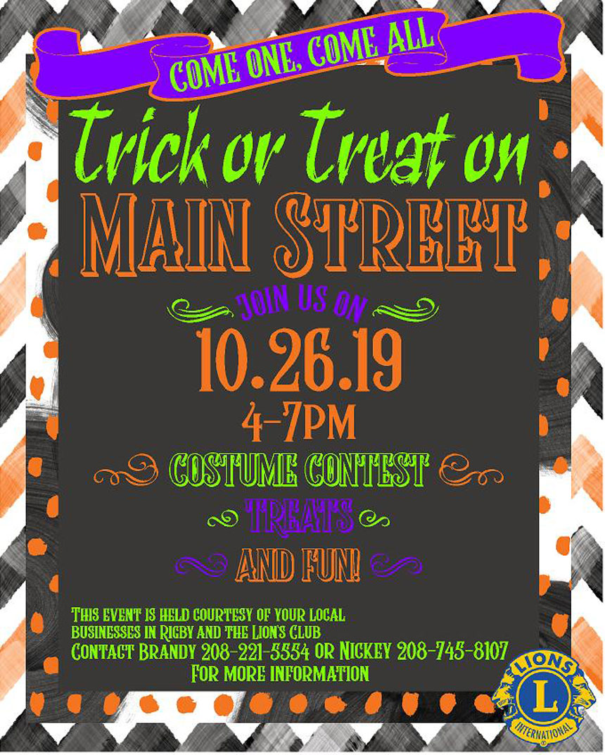 After the pumpkin walk, Rigby businesses and the Lions Club are teaming up for Trick-or-Treat on Main Street.