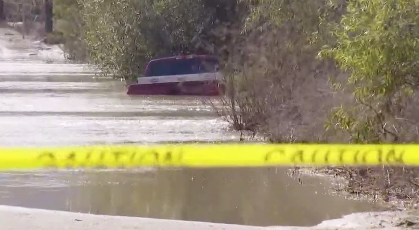 No one was hurt, but the truck wasn’t able to be pulled out right away because of the high water, CBS 8 reports.