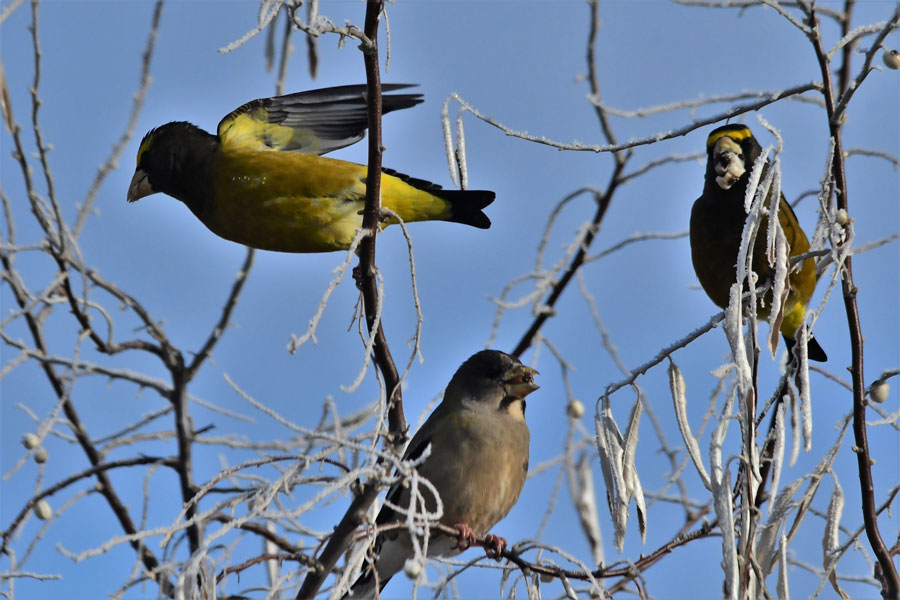 Tuesday, the last day we could get the “week-count” I ran into Clark east of Rexburg where we found the flock of about 500 rosy finches and the six sharpies, but no goshawks were observed. I also covered the Burton area where I enjoyed watching the swans, Red-tailed hawks and Evening grosbeaks feasting on Russian olives.
