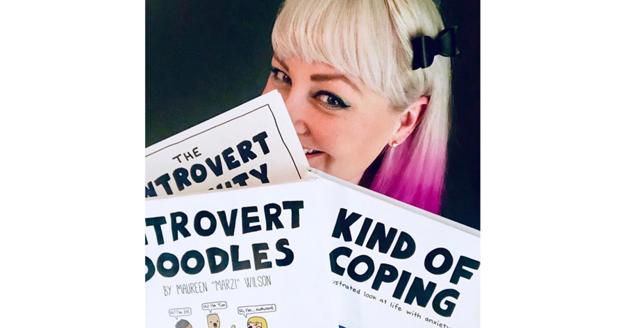 In 2016, Adams Media (an imprint of Simon and Schuster) asked if she would be willing to turn her doodles into a book. She never set out with the intention to write a book, let alone four of them, but she knows her illustrations can help other introverts know they aren’t alone and that it’s okay to open up. Therapists have told her they use her drawings with their younger clients, even though her main demographic is for people ages 18-34.