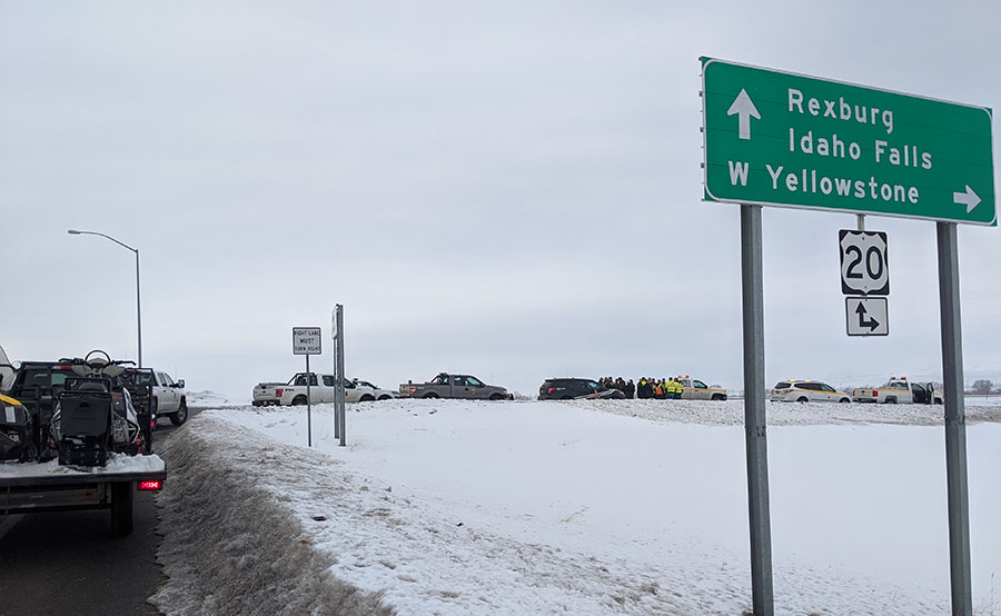 IDFG and local law enforcement prepare to move elk west across US Highway 20 Friday morning. | Eric Grossarth EastIdahoNews.com