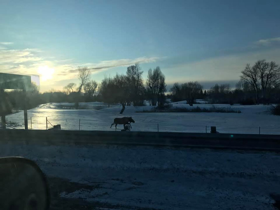 Moose on the loose on U.S. Highway 20 near Thornton | Courtesy Luis Yacuta