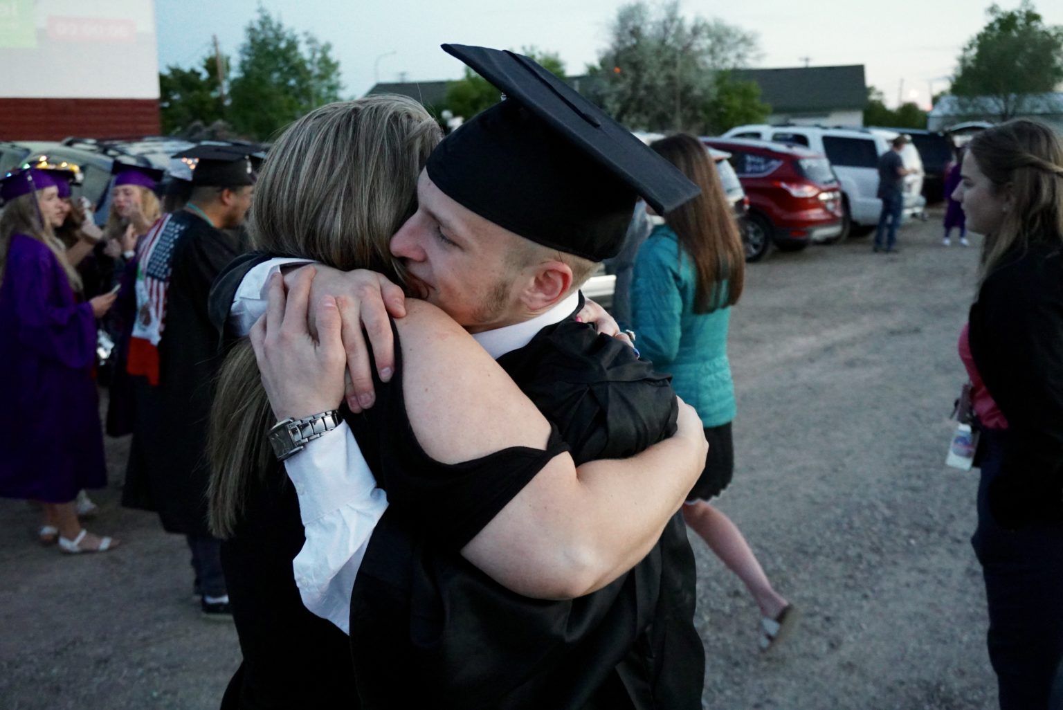 IDAHO FALLS (IdahoEdNews.org) — Dozens of Compass Academy seniors embraced under the hulking drive-in theater screen.