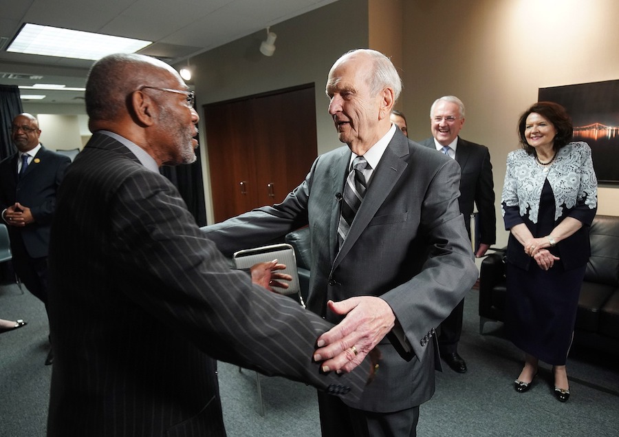 President Russell M. Nelson joined NAACP President and CEO Derrick Johnson, Leon Russell, NAACP chairman of the board, and The Rev. Amos C. Brown, NAACP chairman emeritus of religious affairs, in a joint op-ed posted on Medium early Monday under the title “Locking arms for racial harmony in America.”