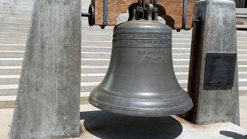 A news release from ISP indicates the bell, which sits just below the front steps of the Statehouse on W. Jefferson Street, was damaged Saturday evening.