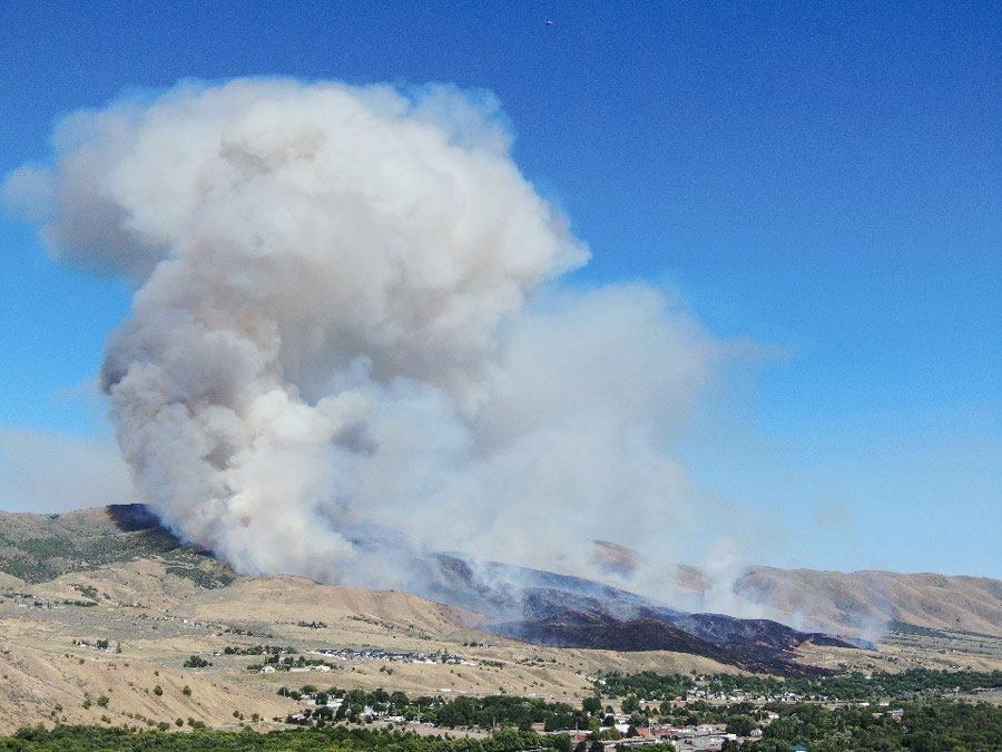 Officials say it has reached the main ridgeline and has a lot of potential for spreading because of windy conditions and terrain. The fire is burning in grass, brush and juniper.