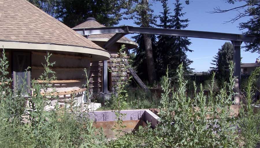 Initially, the two yurts sat adjacent to each other. Dixon moved them further apart and placed them on permanent foundations. Historically, yurts were used by nomadic central Asians as a portable round tent covered in skins or felt.