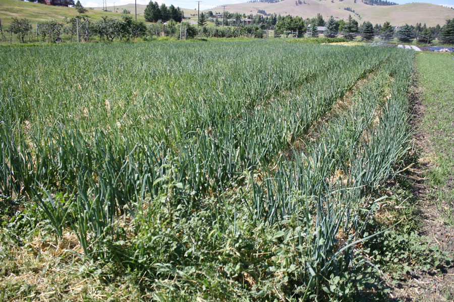 Onions are a great crop to grow in eastern Idaho. They can tolerate our cool springs and are not overly complex to grow. Onions are moderate users of the three major nutrients, (Nitrogen, Phosphorus, and Potassium) and enjoy a soil mixed with lots of loose, well-composted, organic matter. Overfertilization of onions can lead to lots of top growth and small bulbs. They do not enjoy having wet feet, so a sandy loam soil works best for giving them adequate drainage.