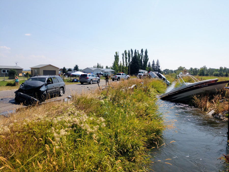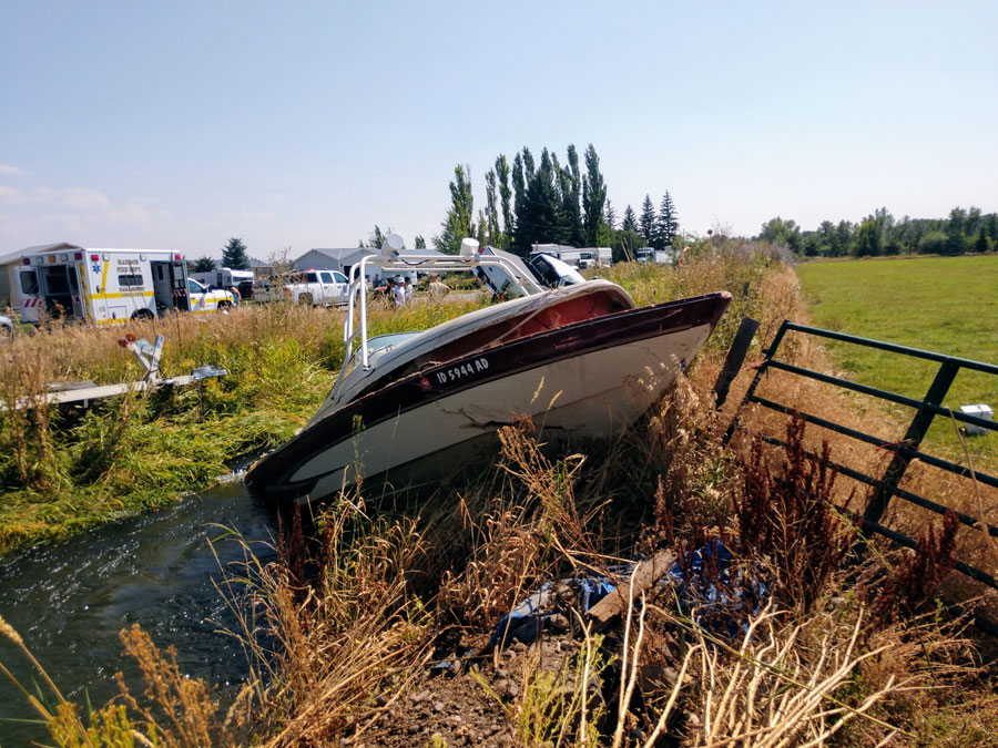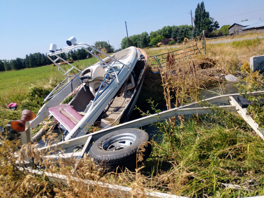 “There was severe damage to both vehicles, trailer and boat. The boat was split in half length-wise. The white Chevy Silverado (came to a stop) partly in the water with severe damage to the front driver’s side door,” Payne says.