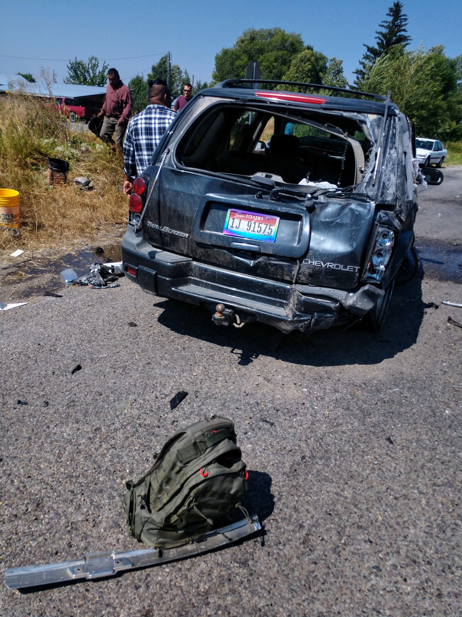 Four people inside the Silverado had minor injuries and were hospitalized. A witness says two were taken by ambulance to Madison Memorial Hospital in Rexburg, and the other two were taken to Eastern Idaho Regional Medical Center in Idaho Falls. Their current conditions are unknown.
