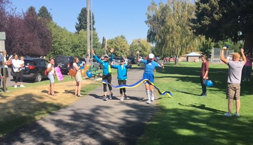Several weeks prior, they spent time mapping out a course throughout the community. They crossed the finish line around 11:30 a.m. at Smith Park and had a celebration with family members.