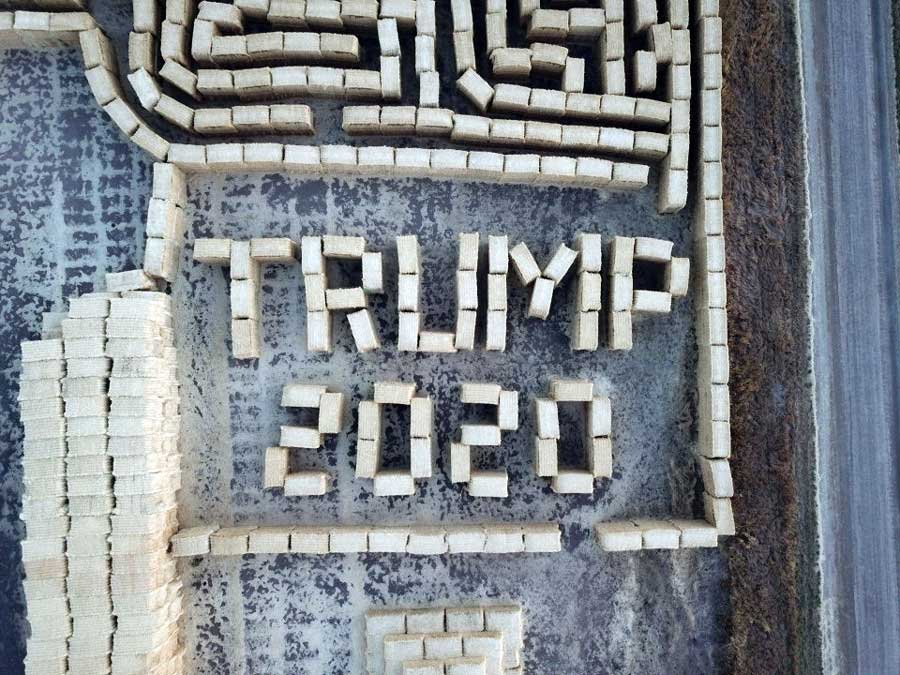 “I’m just a big Trump fan,” Crane said. “I thought when this year I make my straw maze, include Trump 2020.”