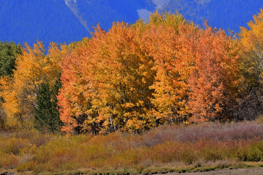 We almost got there too late as she was rounding up her four cubs and was headed up Signal Mountain. We did get some poor long-range shots of her and her cubs, but at least we saw them. We enjoyed the fall colors and the majestic Teton Peaks and Mount Moran, went on a short hike toward Death Canyon and decided to take a short cut to Wilson. That was a mistake.